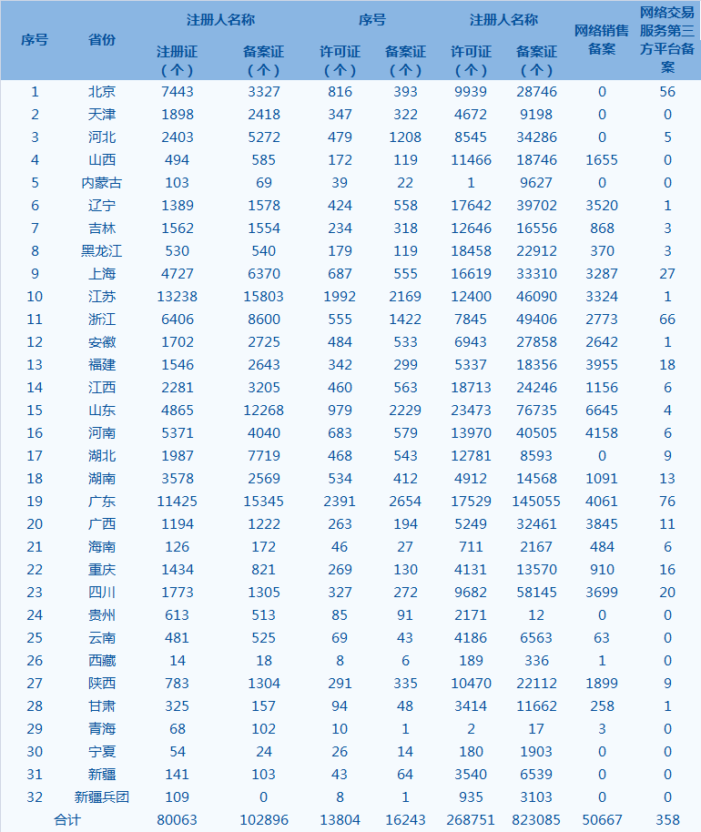 3.國(guó)家藥監(jiān)局發(fā)布各省醫(yī)療器械許可備案相關(guān)信息(截至2021年2月28日)。