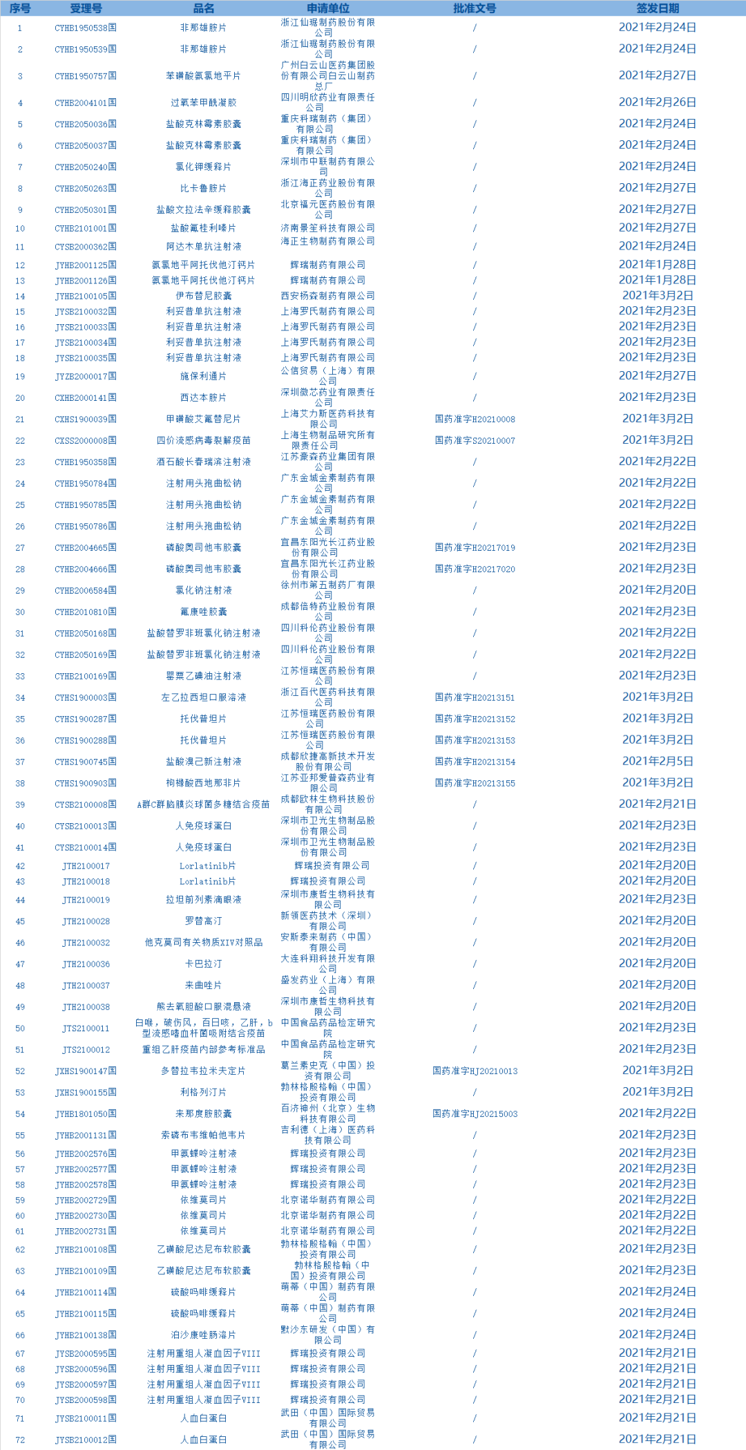 4.國(guó)家藥監(jiān)局發(fā)布3期藥品批準(zhǔn)證明文件待領(lǐng)信息/藥品通知件待領(lǐng)取信息,共包括72個(gè)受理號(hào),涉及仙琚制藥股份有限公司等企業(yè)。(截至3月5日)