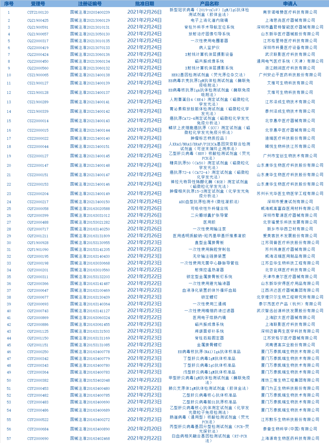 5.國(guó)家藥監(jiān)局發(fā)布4期醫(yī)療器械批準(zhǔn)證明文件(準(zhǔn)產(chǎn))待領(lǐng)信息,共包括57個(gè)受理號(hào),涉及北京惠中醫(yī)療器械有限公司等企業(yè)。(截至3月5日)