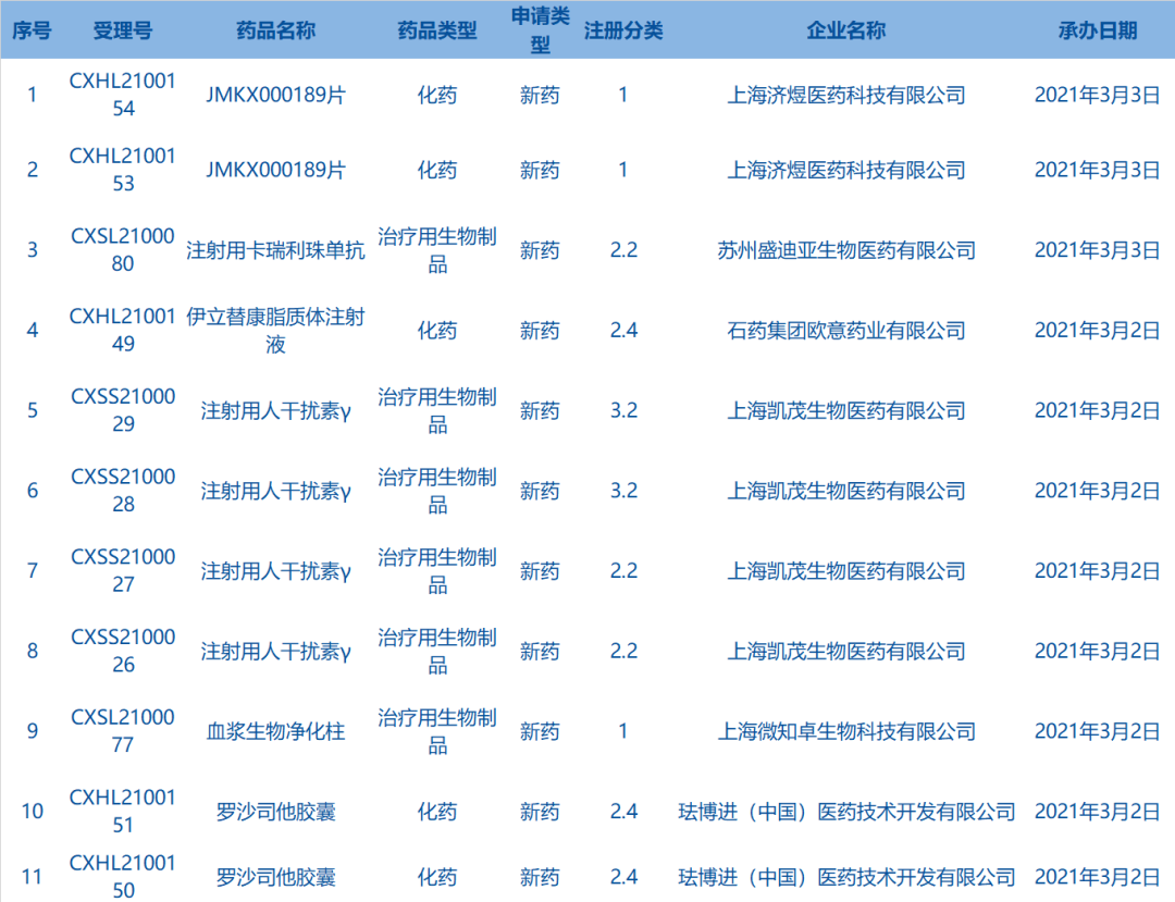 6. CDE承辦受理11個(gè)新藥上市申請(qǐng),包括羅沙司他膠囊等藥品。(截至3月5日)