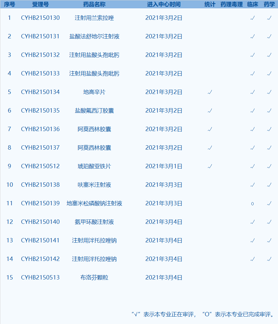 7. CDE網(wǎng)站公示15個(gè)仿制藥一致性評(píng)價(jià)任務(wù),涉及地高辛片等藥品。(截至3月5日)