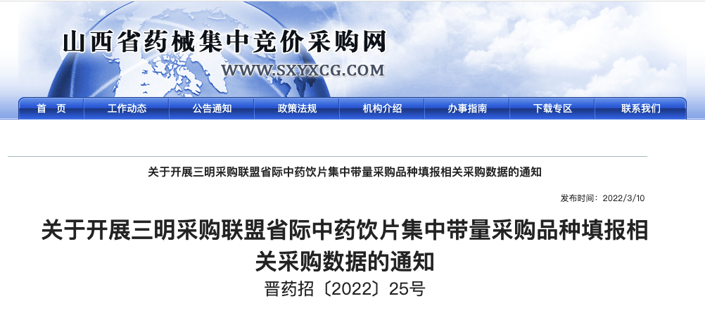 據(jù)賽柏藍(lán)統(tǒng)計(jì),截至目前,山西、寧夏、山東三地已經(jīng)發(fā)布中藥飲片報量通知,報量截止時間均為3月16日24時。
