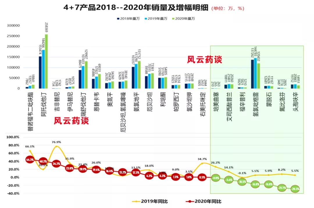 表1:國采4+7產(chǎn)品2018--2020年銷量變化