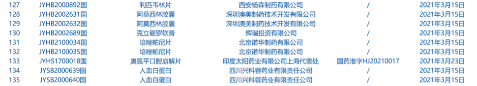 3.國家藥監(jiān)局發(fā)布2期藥品批準(zhǔn)證明文件待領(lǐng)信息,共包括135個(gè)受理號(hào),涉及默沙東研發(fā)(中國)有限公司等企業(yè)。(截至3月28日)