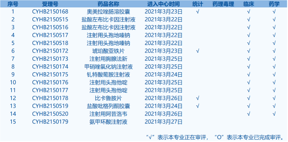 4.CDE網(wǎng)站公示15個(gè)仿制藥一致性評(píng)價(jià)任務(wù),涉及比卡魯胺片等藥品。(截至3月28日)