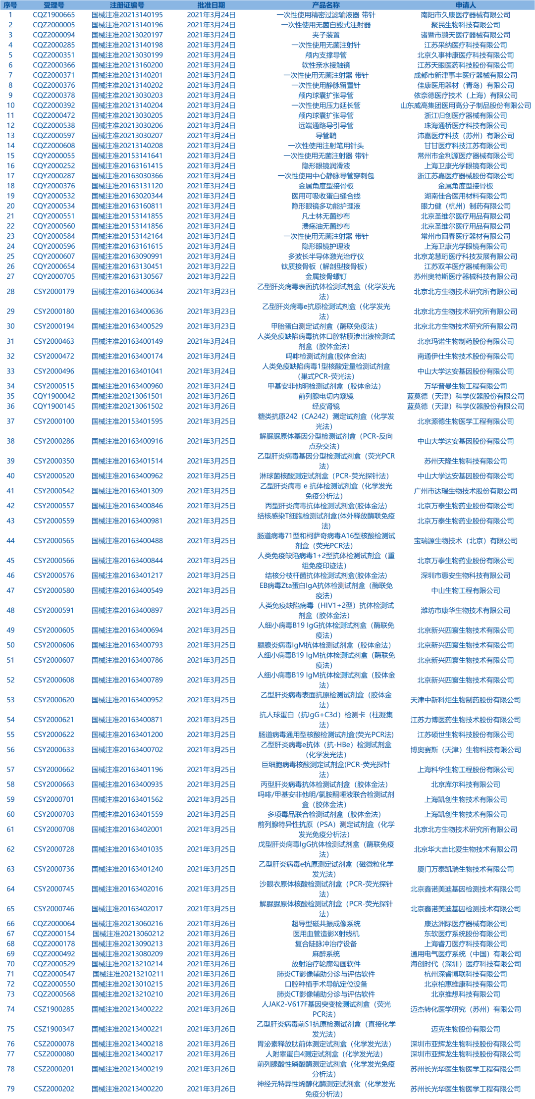 2.國家藥監(jiān)局發(fā)布3期醫(yī)療器械批準(zhǔn)證明文件(準(zhǔn)產(chǎn))待領(lǐng)信息,共包括79個(gè)受理號(hào),涉及聚民生物科技有限公司等企業(yè)。(截至4月5日)