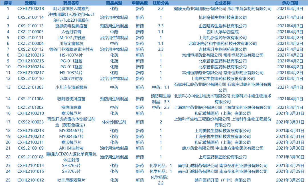 4.CDE承辦受理25個(gè)新藥上市申請(qǐng),包括六合丹軟膏等藥品。(截至4月5日)