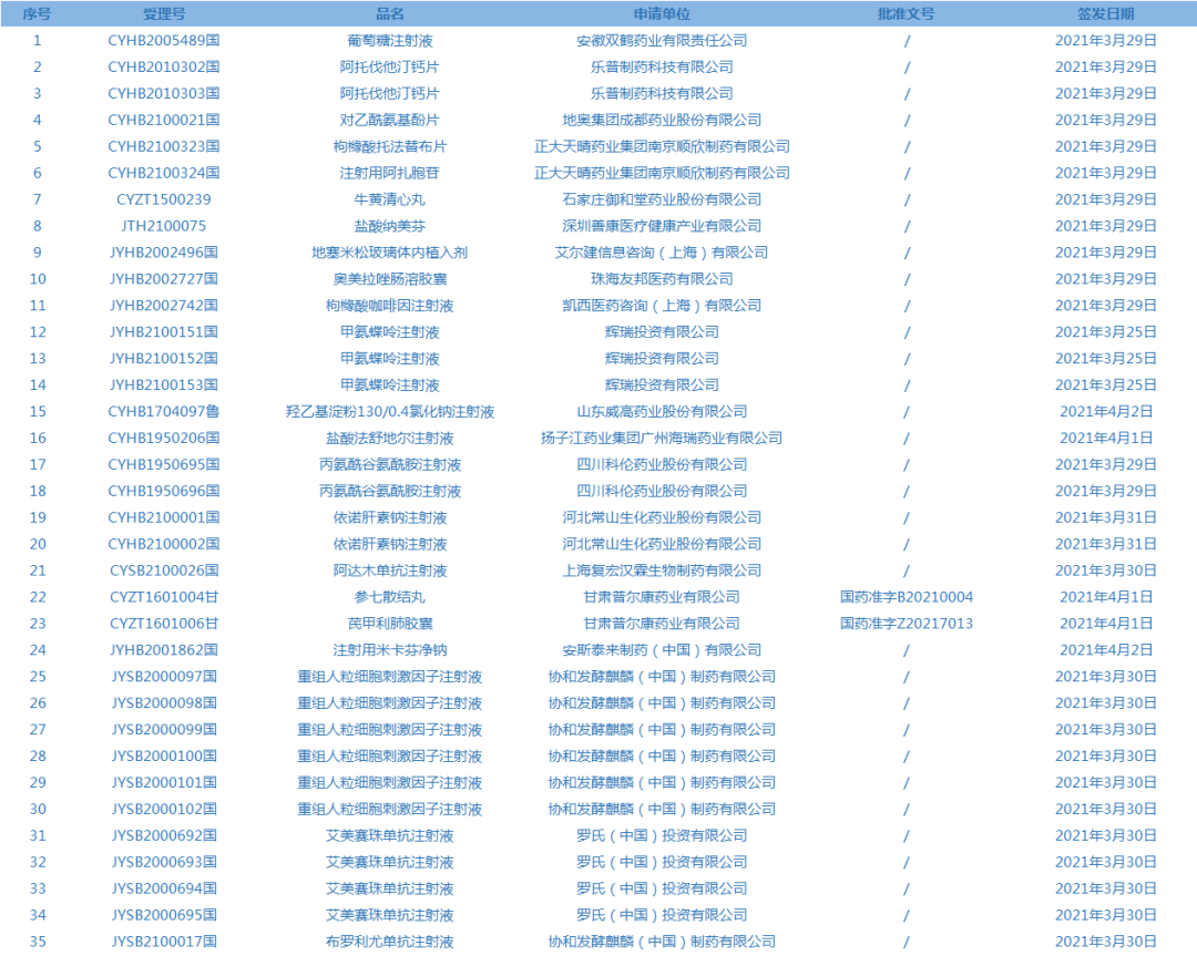 2.國(guó)家藥監(jiān)局發(fā)布2期藥品批準(zhǔn)證明文件待領(lǐng)信息,共包括35個(gè)受理號(hào),涉及羅氏(中國(guó))投資有限公司等企業(yè)。(截至4月11日)
