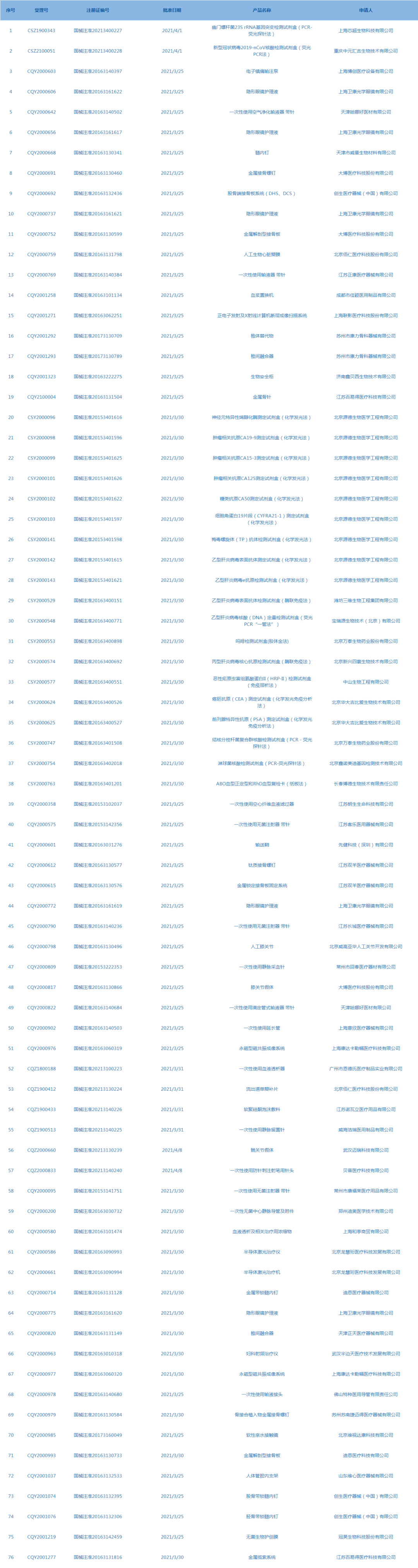 3.國(guó)家藥監(jiān)局發(fā)布4期醫(yī)療器械批準(zhǔn)證明文件(準(zhǔn)產(chǎn))待領(lǐng)信息,共包括76個(gè)受理號(hào),涉及上海芯超生物科技有限公司等企業(yè)。(截至4月11日)