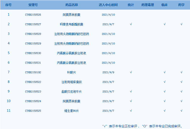 4.CDE網(wǎng)站公示11個(gè)仿制藥一致性評(píng)價(jià)任務(wù),涉及阿莫西林膠囊等藥品。(截至4月11日)