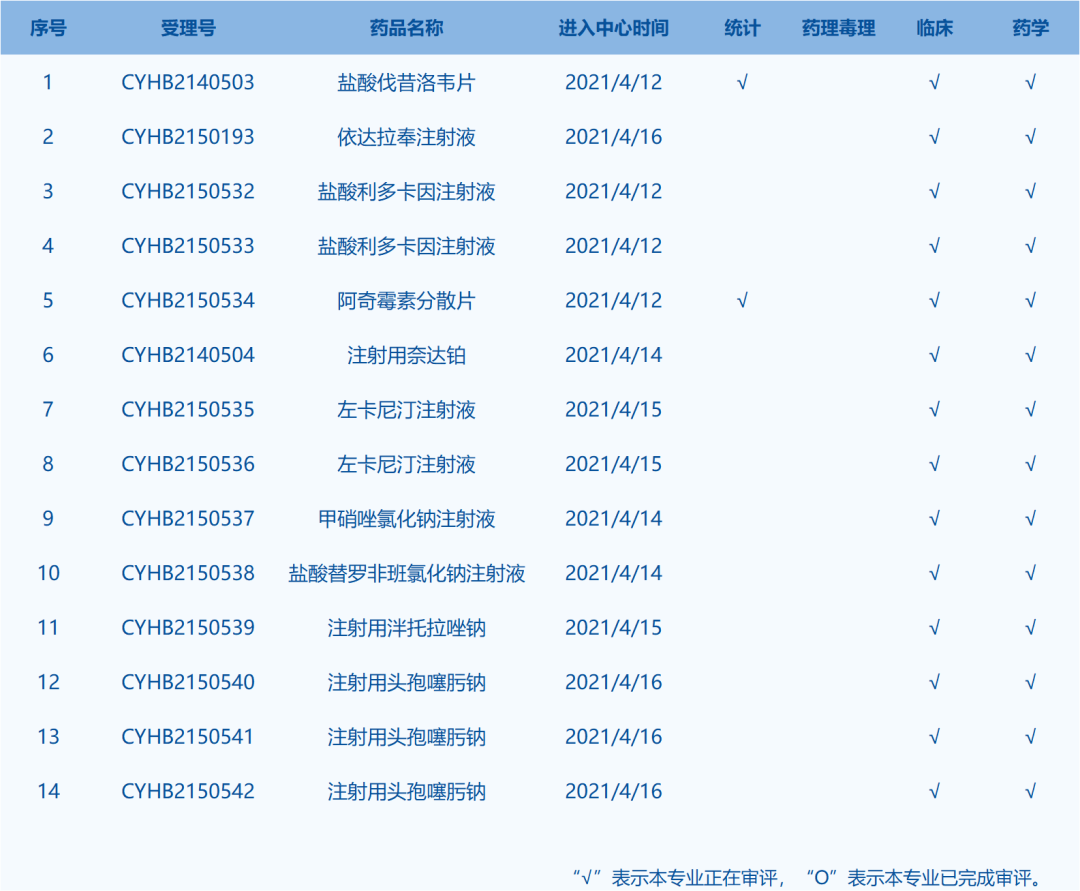 4.CDE網(wǎng)站公示14個仿制藥一致性評價任務(wù),涉及鹽酸伐昔洛韋片等藥品。(截至4月18日)