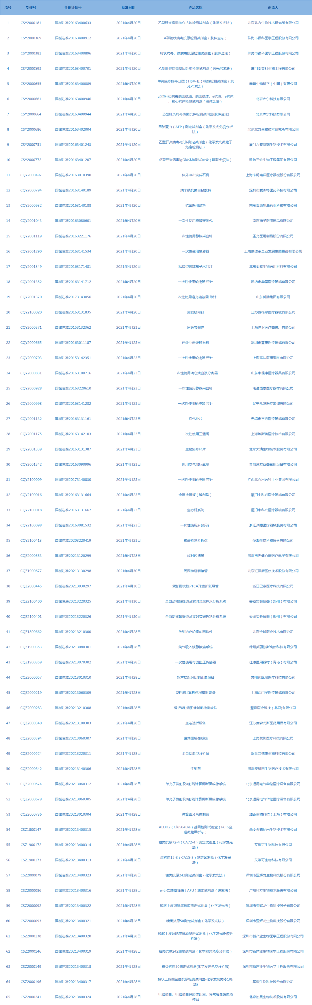 6.國家藥監(jiān)局發(fā)布5期醫(yī)療器械批準(zhǔn)證明文件(準(zhǔn)產(chǎn))待領(lǐng)信息,共包括65個(gè)受理號(hào),涉及北京北方生物技術(shù)研究所有限公司等企業(yè)。(截至5月7日)