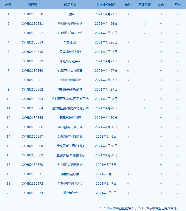 7.CDE網(wǎng)站公示20個(gè)仿制藥一致性評(píng)價(jià)任務(wù),涉及注射用頭孢呋辛鈉等藥品。(截至5月7日)