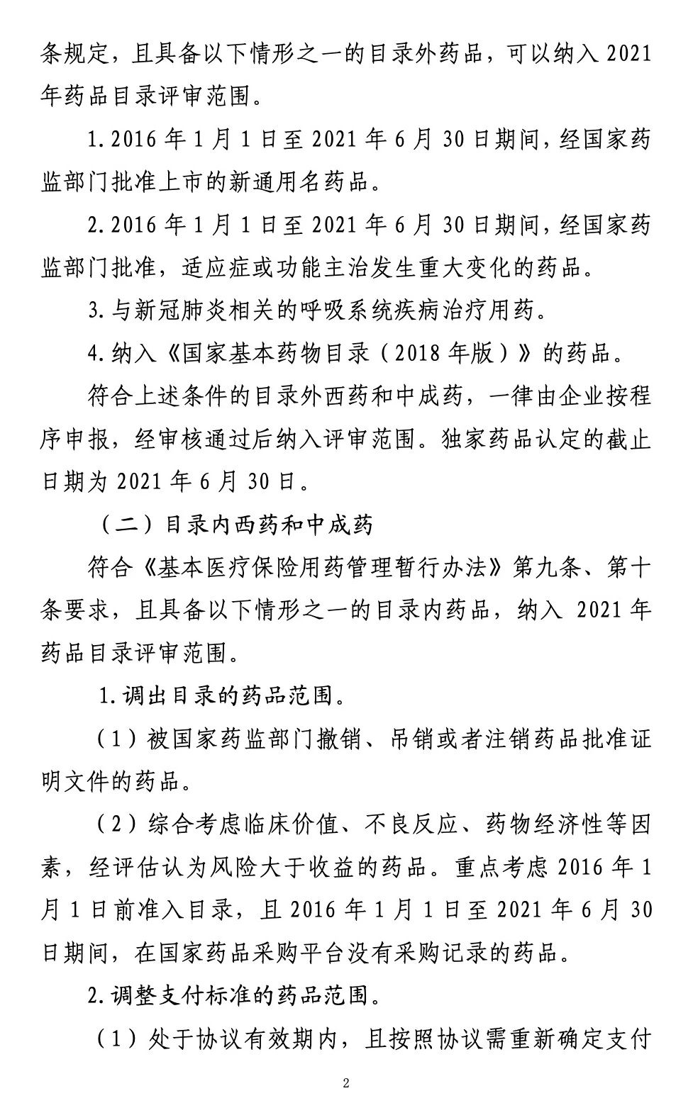 綜合考慮基本醫(yī)保的功能定位、藥品臨床需求、基金承受能力,2021年藥品目錄調(diào)整范圍如下: