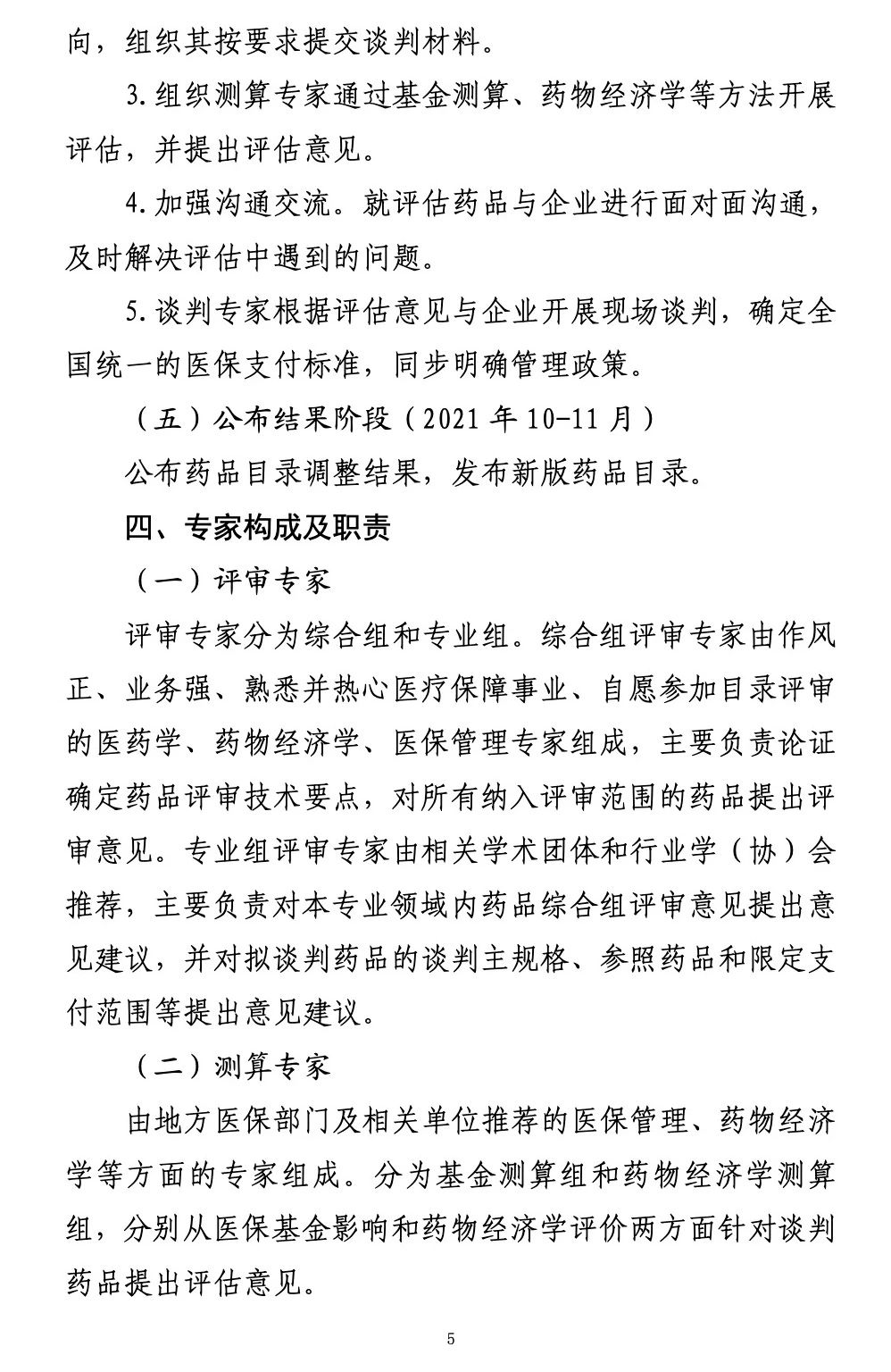 工作方案規(guī)定,2021年國家藥品目錄調(diào)整分為準備(2021年6-7月)、申報(2021年7-8月)、專家評審(2021年8-9月)、談判(2021年9-10月)、公布結(jié)果(2021年10-11月)5個階段。