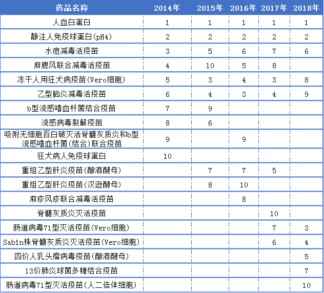 據(jù)藥智生物制品銷售數(shù)據(jù),近5年來,生物制品簽發(fā)銷售額排名前10的藥品更迭不斷,有藥品穩(wěn)居寶座無可撼動,也有藥品異軍突起,市場增長迅速。