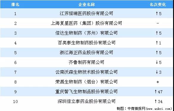 2019中國生物藥企業(yè)研發(fā)實力排行榜TOP10