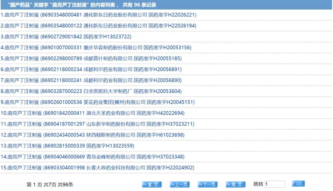 以曲克蘆丁注射劑為例,我們檢索國家藥監(jiān)局數(shù)據(jù)庫,檢索結(jié)果顯示有96條批文,且該品種多次出現(xiàn)在各級帶量采購目錄中,降價幅度較大。以今年年初四川省牽頭的“六省二區(qū)”帶量采購為例,業(yè)內(nèi)流傳的曲克蘆丁注射液(2ml:0.06g)的報價是0.13元/支。