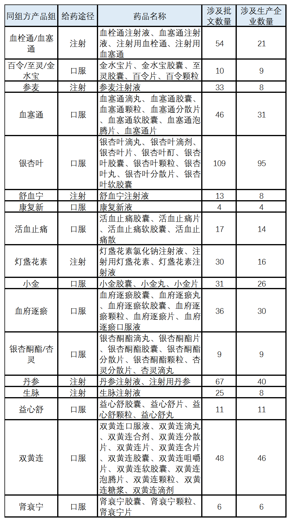 附:中成藥帶量采購目錄和涉及批文、生產(chǎn)企業(yè)數(shù)量
