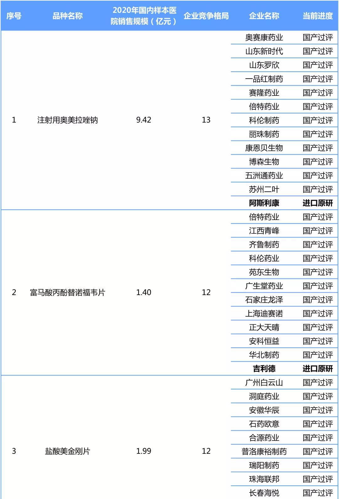 過評企業(yè)數(shù)僅次于奧美拉唑鈉注射液的富馬酸丙酚替諾福韋片是治療成人和青少年慢性乙型肝炎的強效藥,由美國制藥公司吉利德(Gilead)研制,商品名為韋立得。