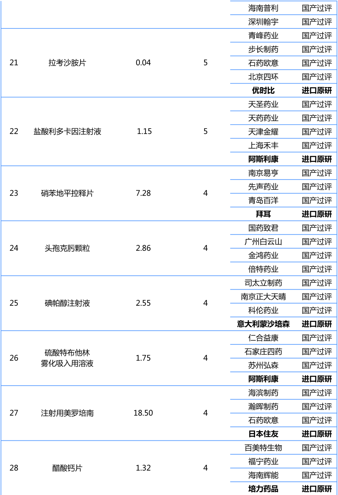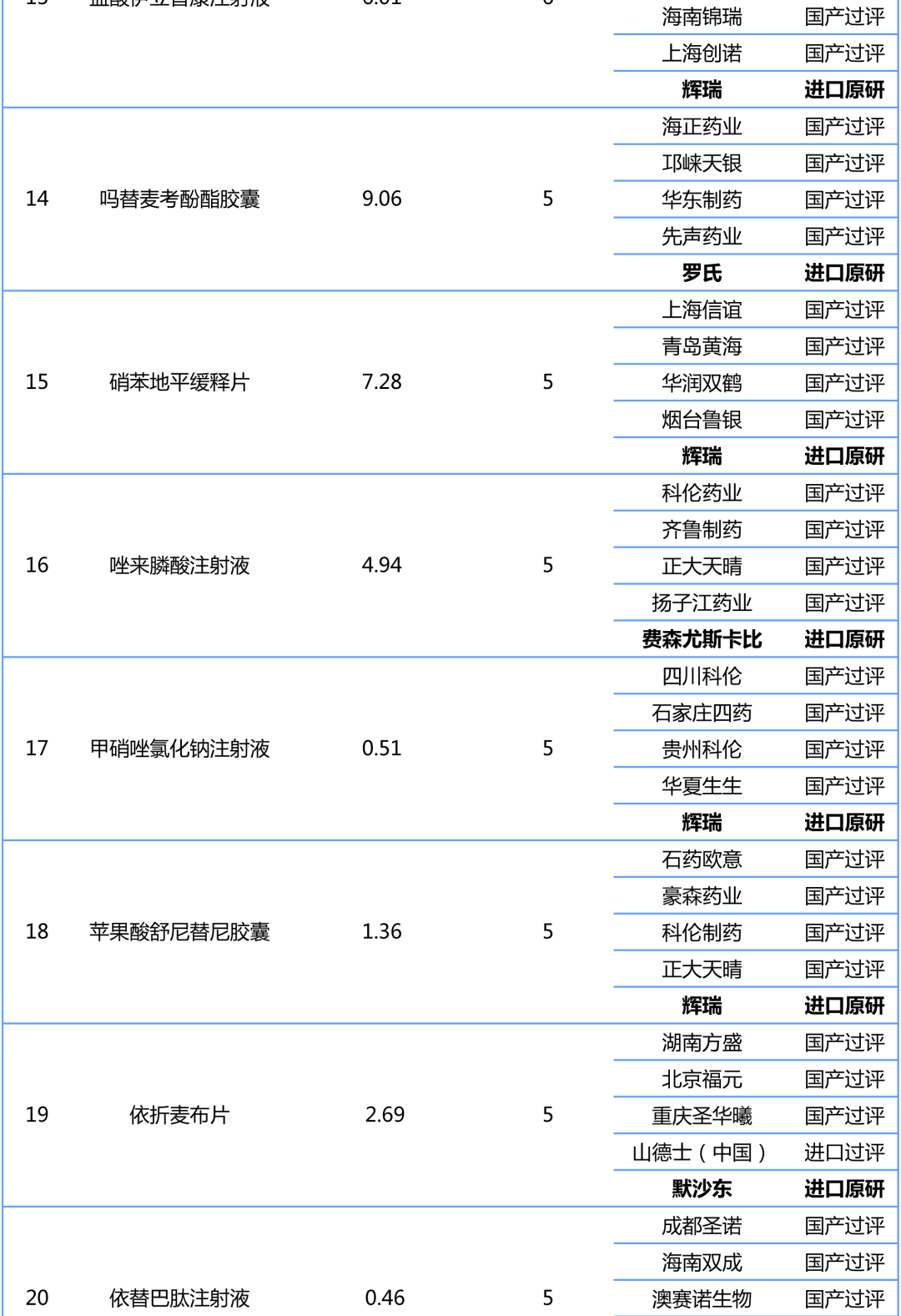 擬中選資格方面,預計還是1.8倍的熔斷機制、大于等于50%的降幅以及單位可比價小于等于0.1元的三個條件之一。