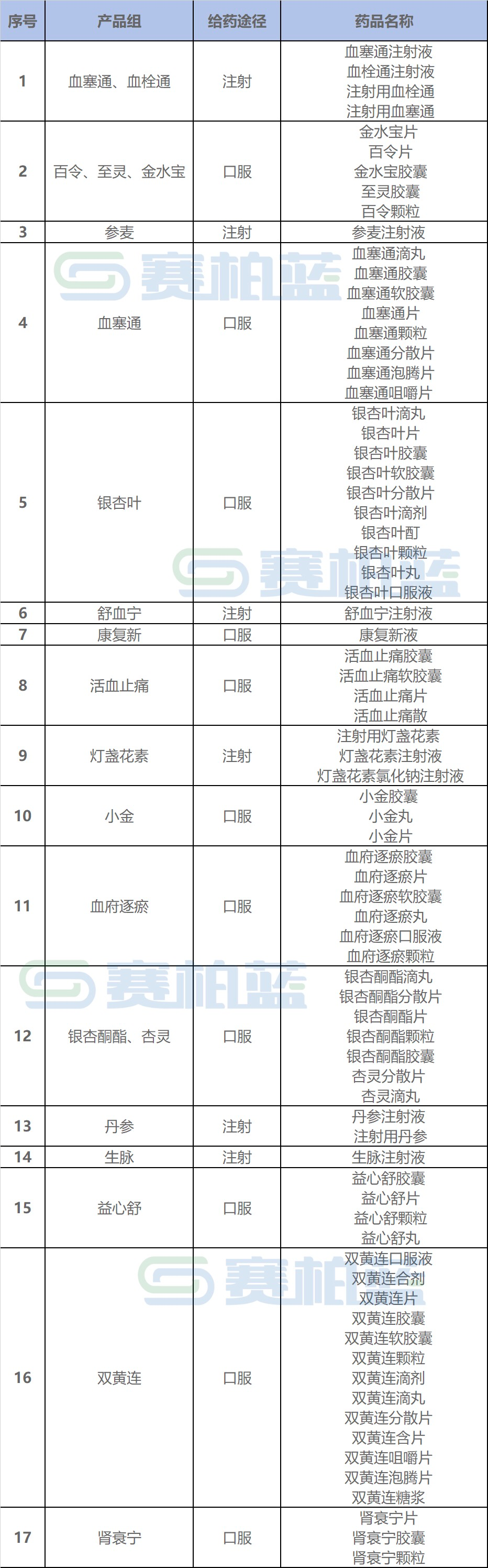 采購(gòu)品種方面,選擇臨床使用量大、采購(gòu)金額高、多家企業(yè)生產(chǎn)的76個(gè)中成藥品,根據(jù)產(chǎn)品的功能主治、給藥途徑和成分,將此次采購(gòu)藥品劃分為17個(gè)產(chǎn)品組進(jìn)行集采。較流傳文件增加了血塞通咀嚼片、銀杏葉口服液2個(gè)品種,由74個(gè),變?yōu)?6個(gè)。