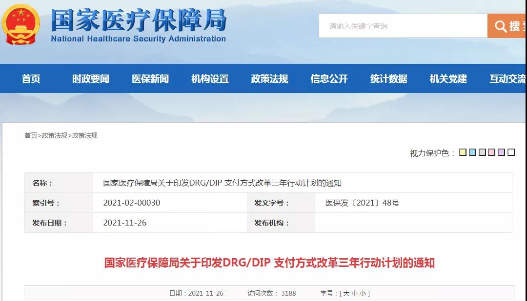 11月26日,國家醫(yī)保局發(fā)布了《國家醫(yī)保局關(guān)于印發(fā)DRG/DIP 支付方式改革三年行動(dòng)計(jì)劃的通知》?!锻ㄖ访鞔_,從2022到2024年,全面完成DRG/DIP付費(fèi)方式改革任務(wù),推動(dòng)醫(yī)保高質(zhì)量發(fā)展。到2024年底,全國所有統(tǒng)籌地區(qū)全部開展DRG/DIP付費(fèi)方式改革工作,先期啟動(dòng)試點(diǎn)地區(qū)不斷鞏固改革成果;到2025年底,DRG/DIP支付方式覆蓋所有符合條件的開展住院服務(wù)的醫(yī)療機(jī)構(gòu),基本實(shí)現(xiàn)病種、醫(yī)保基金全覆蓋。
