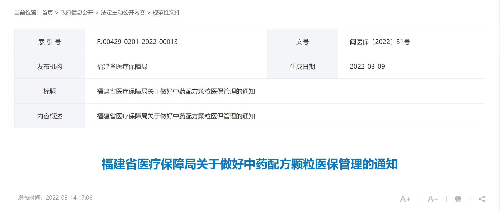 4月1日(今日)起,福建省醫(yī)保局印發(fā)的《關(guān)于做好中藥配方顆粒醫(yī)保管理的通知》(下稱《通知》,全文見文末)正式施行。