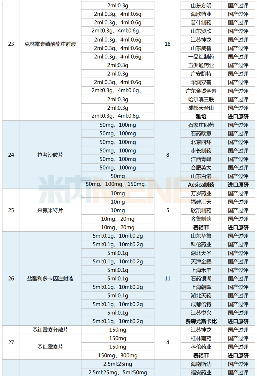 附:第七批國采品種企業(yè)競爭格局(截至5月25日)