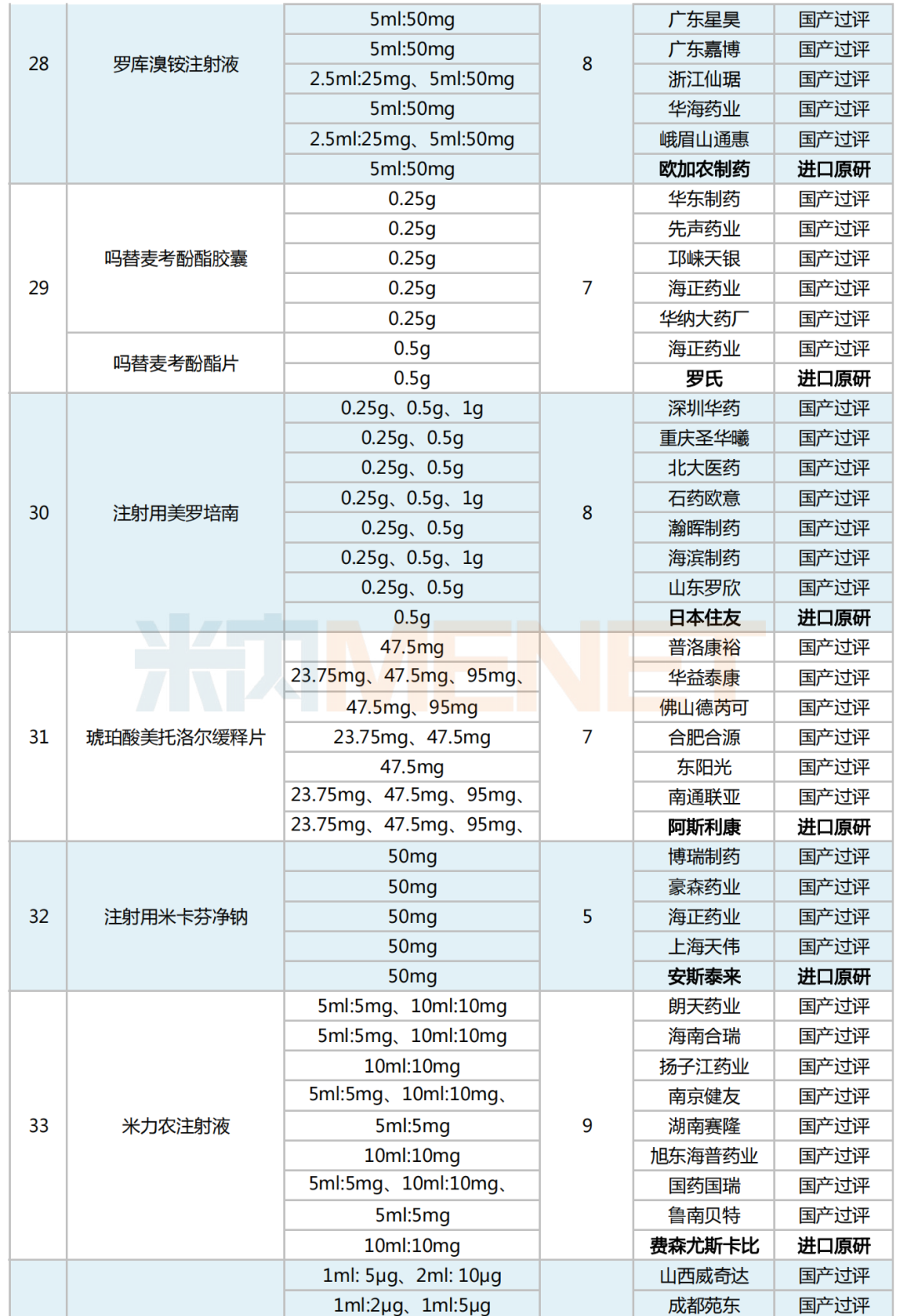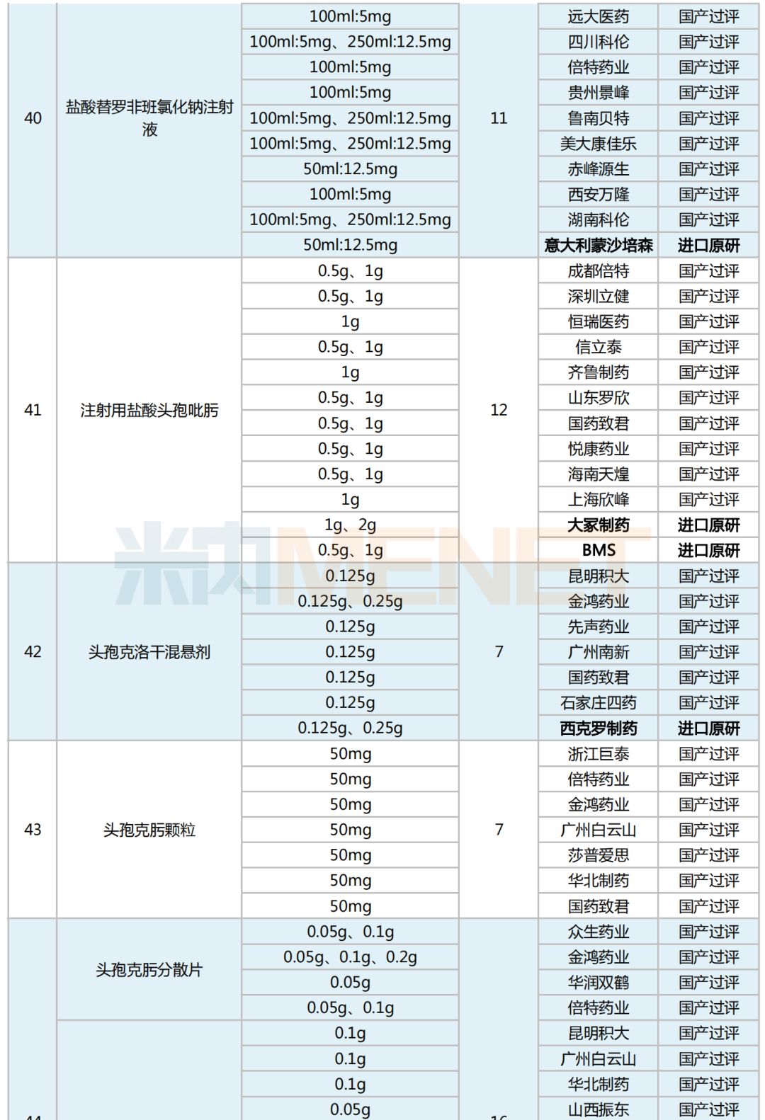 尚未納入集采的注射用哌拉西林鈉他唑巴坦鈉、注射用頭孢哌酮鈉舒巴坦鈉、注射用阿莫西林鈉克拉維酸鉀過評企業(yè)數(shù)分別達2家、5家、5家,納入集采也只是時間早晚的問題。