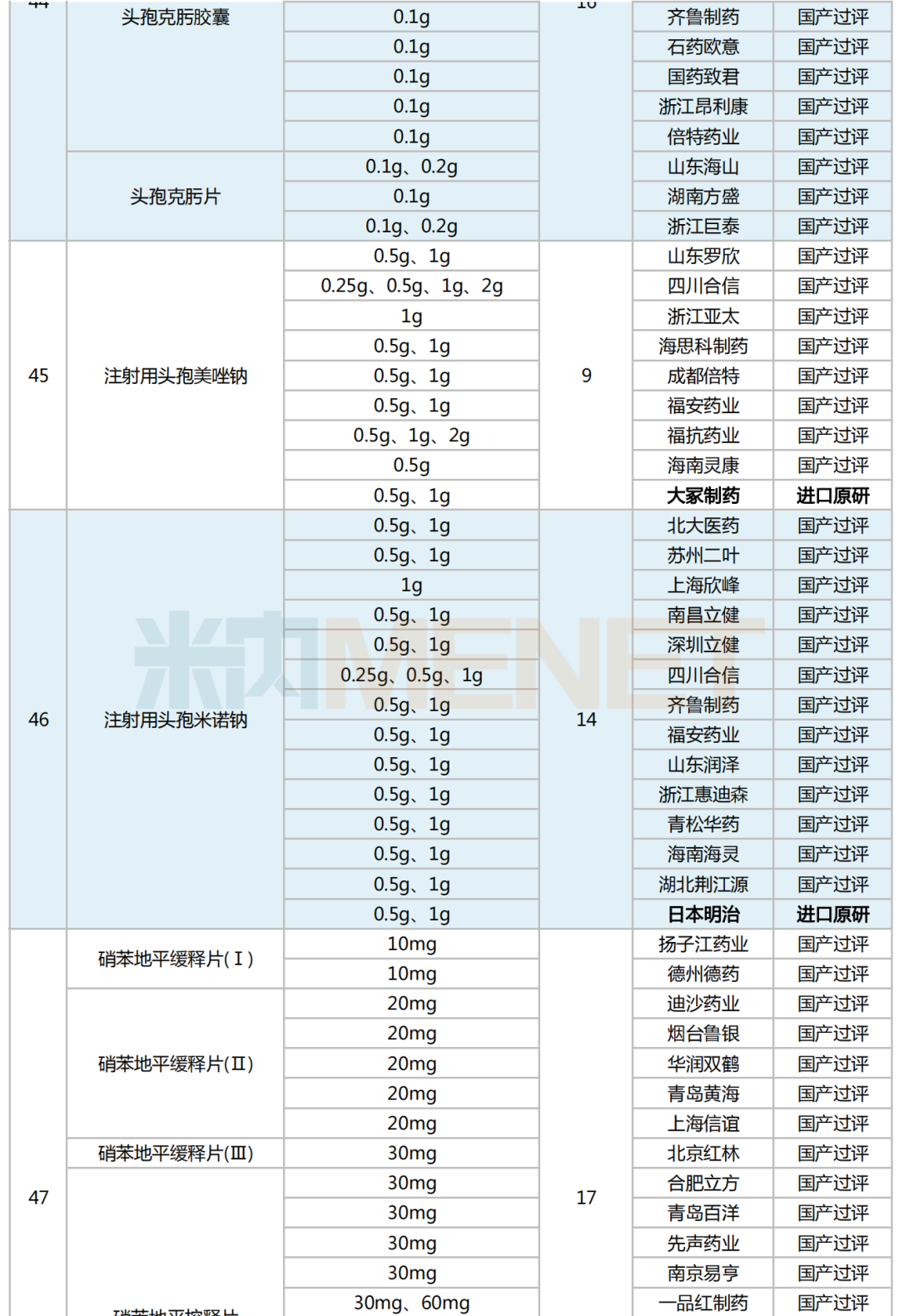 米內(nèi)網(wǎng)數(shù)據(jù)顯示,10個品種在2021年中國城市公立醫(yī)院、縣級公立醫(yī)院、城市社區(qū)中心以及鄉(xiāng)鎮(zhèn)衛(wèi)生院(簡稱中國公立醫(yī)療機構)終端合計銷售規(guī)模超過300億元,硝苯地平控釋劑型、美羅培南注射劑2個超60億大品種領銜;石藥集團(5個)、國藥集團(4個)、華北制藥(3個)、揚子江藥業(yè)(3個)、浙江海正藥業(yè)(3個)均有3個及以上過評品種在列。
