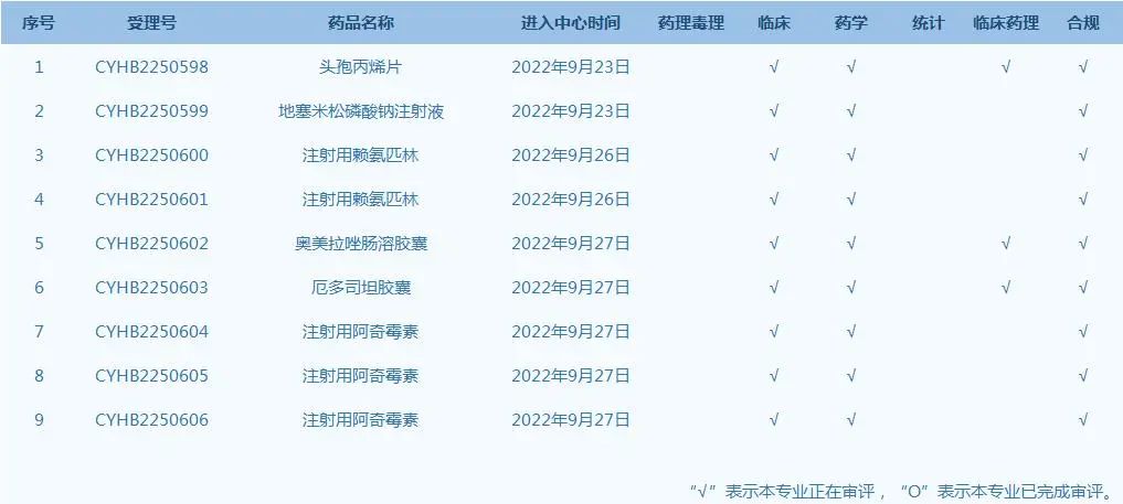 7.國家藥監(jiān)局藥品審評中心網(wǎng)站公示9個(gè)仿制藥一致性評價(jià)任務(wù),涉及頭孢丙烯片等藥品(截至9月27日)。