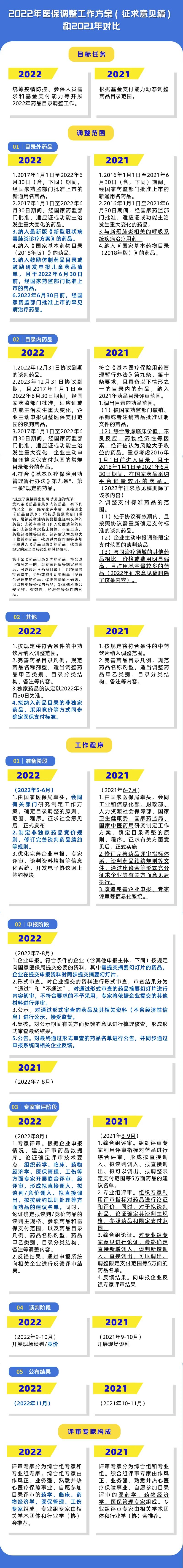 早前6月29日,國家醫(yī)保局發(fā)布《2022年國家基本醫(yī)療保險、工傷保險和生育保險藥品目錄調(diào)整工作方案》及相關(guān)文件,標志著第五輪國家醫(yī)保藥品目錄調(diào)整工作正式啟動。其中,專家審評階段與2021年相比,主要內(nèi)容變化如下: