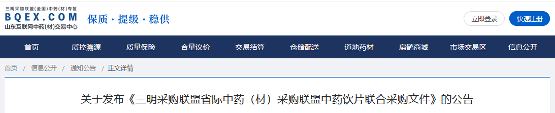 10月31日,三明采購(gòu)聯(lián)盟省際中藥(材)采購(gòu)聯(lián)盟辦公室發(fā)布中藥飲片聯(lián)盟采購(gòu)文件(征求意見稿);3月3日,聯(lián)盟官方首次發(fā)布中藥飲片報(bào)量通知。在貫徹黨中央、國(guó)務(wù)院促進(jìn)中醫(yī)藥傳承創(chuàng)新發(fā)展的意見和“保質(zhì)、提級(jí)、穩(wěn)供”的思路下,中藥飲片聯(lián)采的探索已經(jīng)邁出了實(shí)質(zhì)性的步伐。