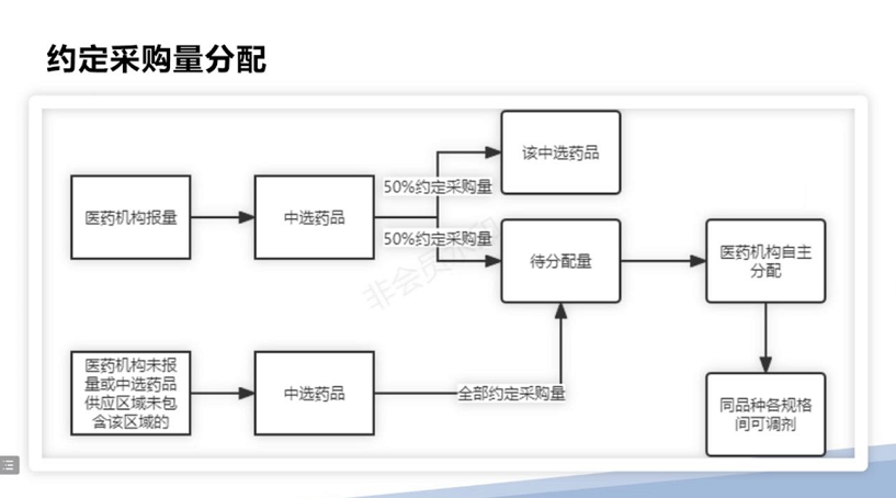 在約定采購(gòu)量上,分為兩類,醫(yī)藥機(jī)構(gòu)報(bào)量及醫(yī)藥機(jī)構(gòu)未報(bào)量或中選藥品供應(yīng)區(qū)域未包含該區(qū)域的中選藥品,具體如下: