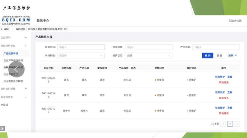 本次聯(lián)合采購(gòu)申報(bào)工作采用線上方式進(jìn)行,所有資質(zhì)文件須線上提交,三明采購(gòu)聯(lián)盟中藥(材)專區(qū)https://www.bqex.com。
