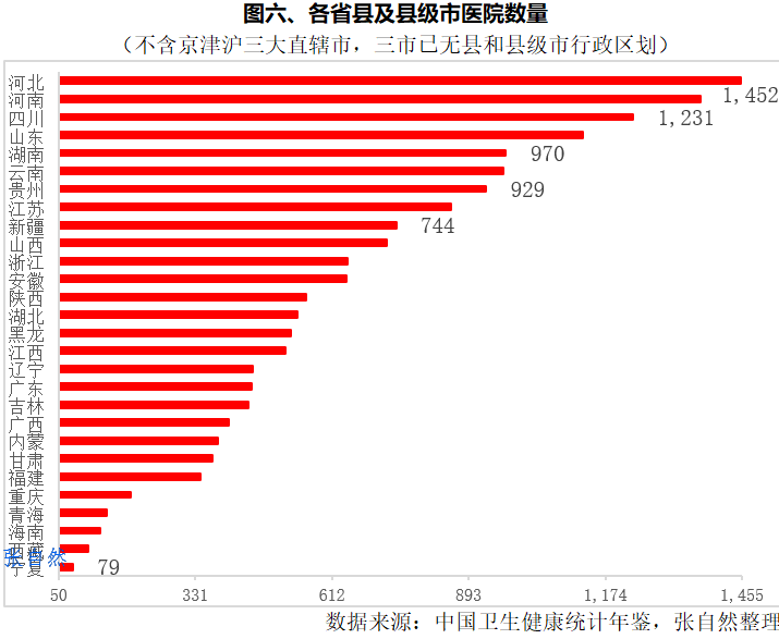 各省縣級醫(yī)院的數(shù)量和布局如何呢,除京津滬三大直轄市已沒有了縣及縣級市的行政建制當(dāng)然也就不再有縣醫(yī)院外,各省、自治區(qū)都有一定數(shù)量的縣級醫(yī)院和縣級市醫(yī)院(以下簡稱“縣域醫(yī)院”)。