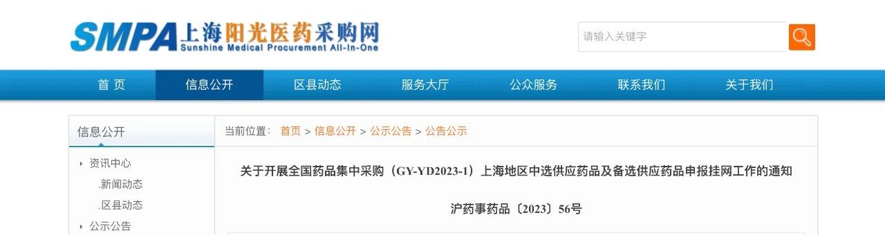 近日,上海陽光醫(yī)藥采購網(wǎng)發(fā)布《關(guān)于開展全國藥品集中采購(GY-YD2023-1)上海地區(qū)中選供應(yīng)藥品及備選供應(yīng)藥品申報掛網(wǎng)工作的通知》(以下簡稱《通知》)。