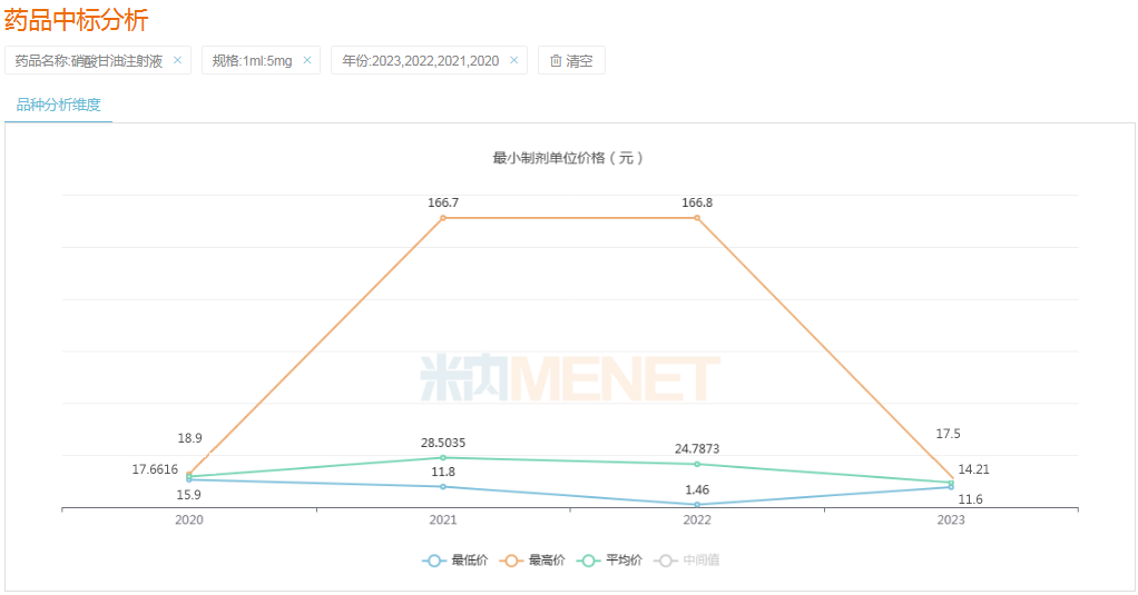 近年來硝酸甘油注射劑(1ml:5mg)全國中標(biāo)情況