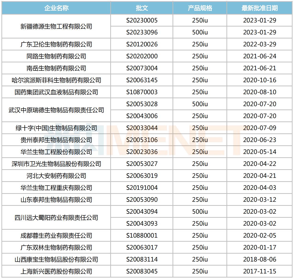 破傷風(fēng)人免疫球蛋白注射劑企業(yè)獲批情況