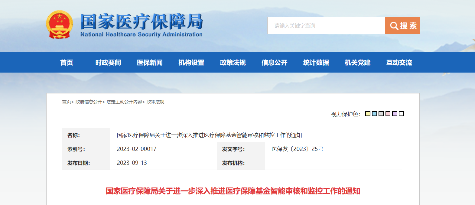 9月13日晚,國家醫(yī)保局發(fā)布《關(guān)于進一步深入推進醫(yī)療保障基金智能審核和監(jiān)控工作的通知》(以下簡稱《通知》),明確到2023年底前全部統(tǒng)籌地區(qū)上線智能監(jiān)管子系統(tǒng),智能審核和監(jiān)控數(shù)據(jù)準(zhǔn)確上傳國家醫(yī)保信息平臺,全面開展經(jīng)辦智能審核,規(guī)范定點醫(yī)藥機構(gòu)服務(wù)行為,初步實現(xiàn)全國智能監(jiān)控“一張網(wǎng)”。