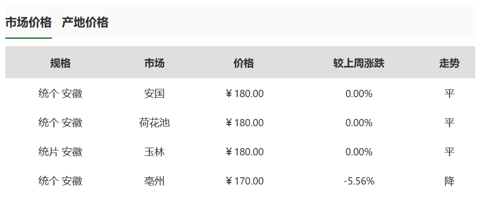 截至6月3日,賽柏藍(lán)查詢中藥材天地網(wǎng)發(fā)現(xiàn),以白術(shù)為例,從統(tǒng)個安徽規(guī)格來看,安國市場、荷花池市場價格、玉林市場價格均為180元/公斤,較上周走勢持平。