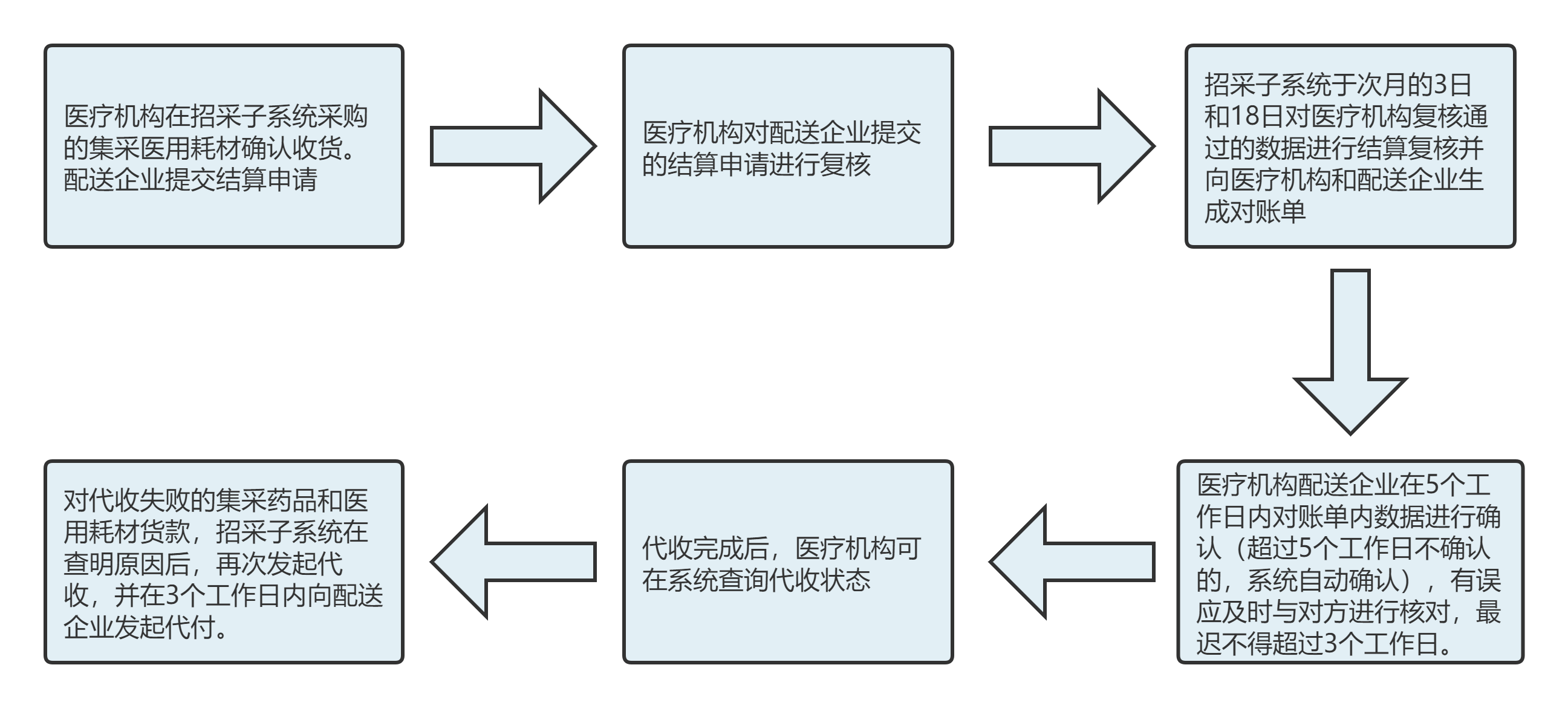 集采醫(yī)用耗材貨款,結(jié)清貨款時間不得超過交貨驗(yàn)收合格后次月底,具體流程如下: