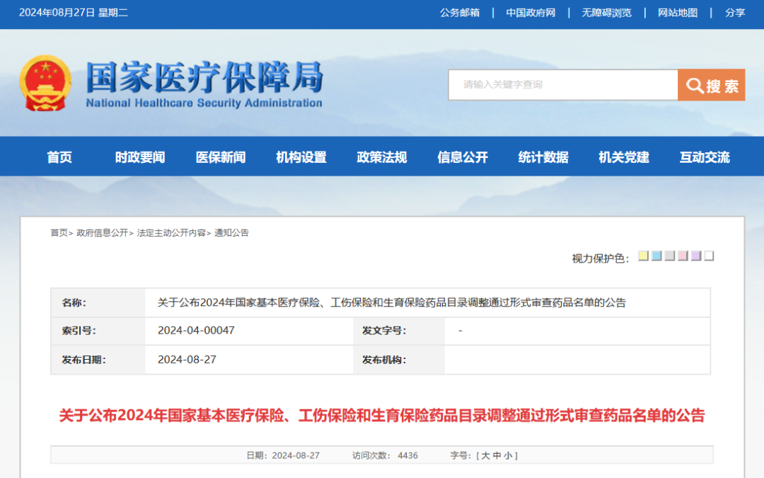 8月27日,國(guó)家醫(yī)保局發(fā)布《關(guān)于公布2024年國(guó)家基本醫(yī)療保險(xiǎn)、工傷保險(xiǎn)和生育保險(xiǎn)藥品目錄調(diào)整通過形式審查藥品名單的公告》,249個(gè)目錄外藥品、196個(gè)目錄內(nèi)藥品通過形式審查。
