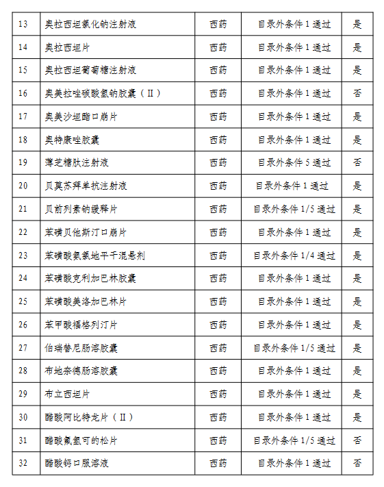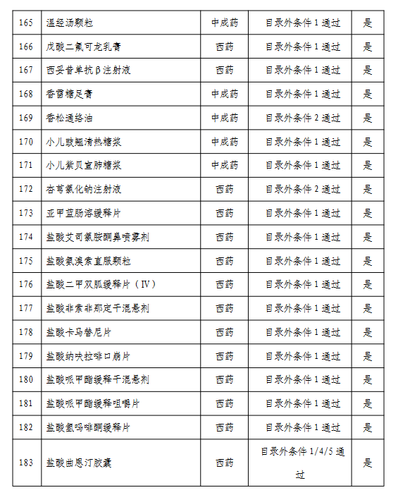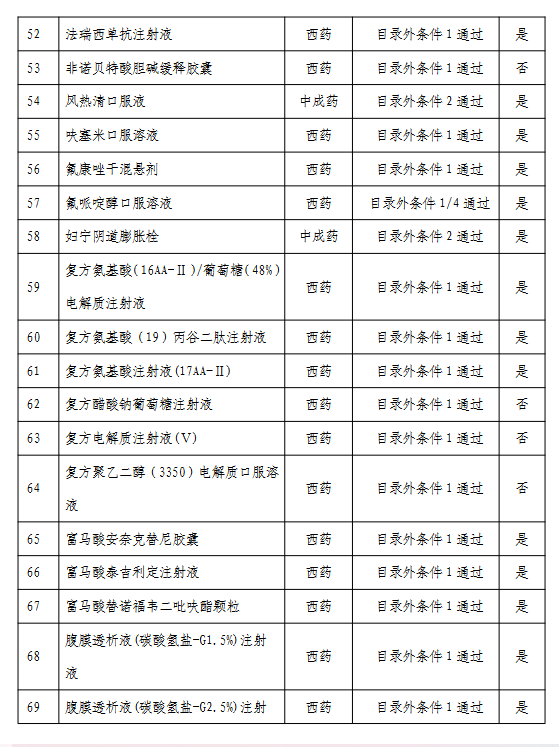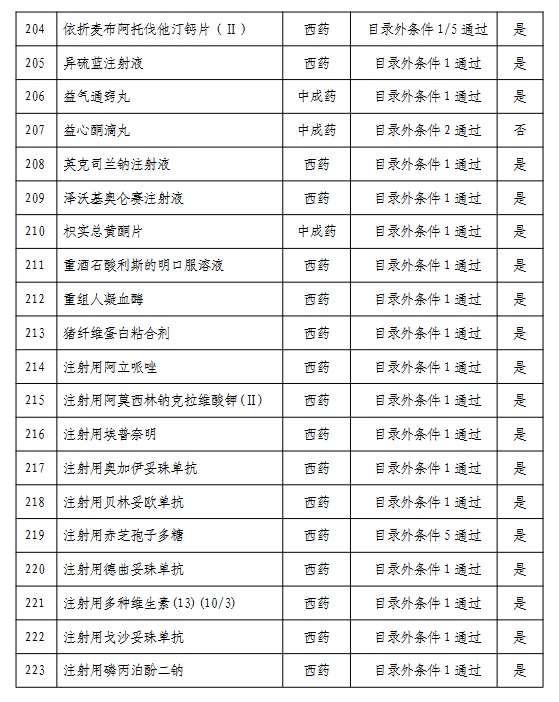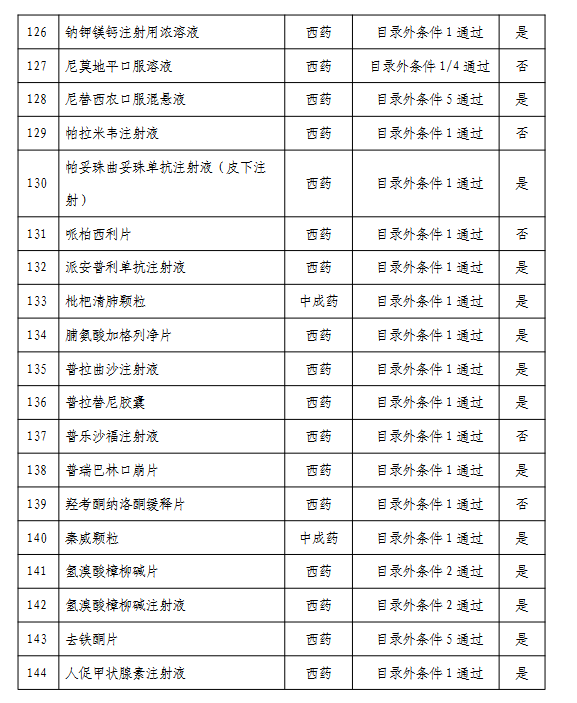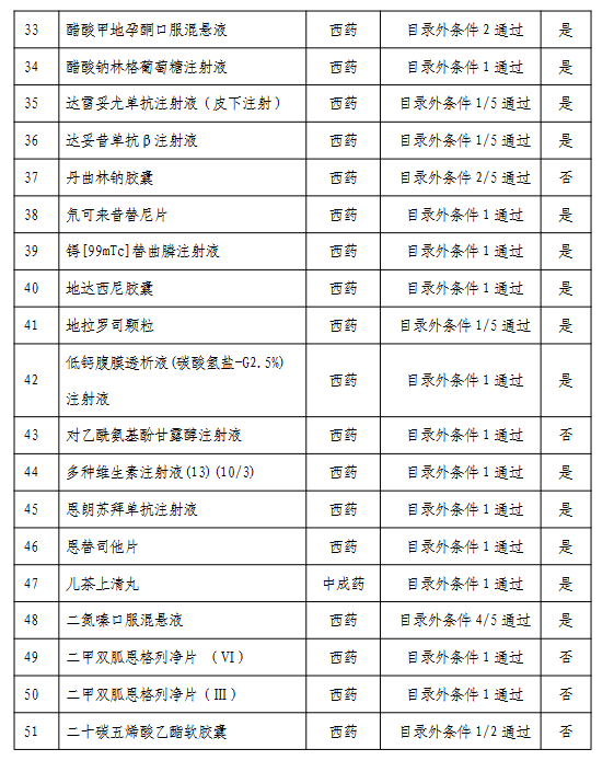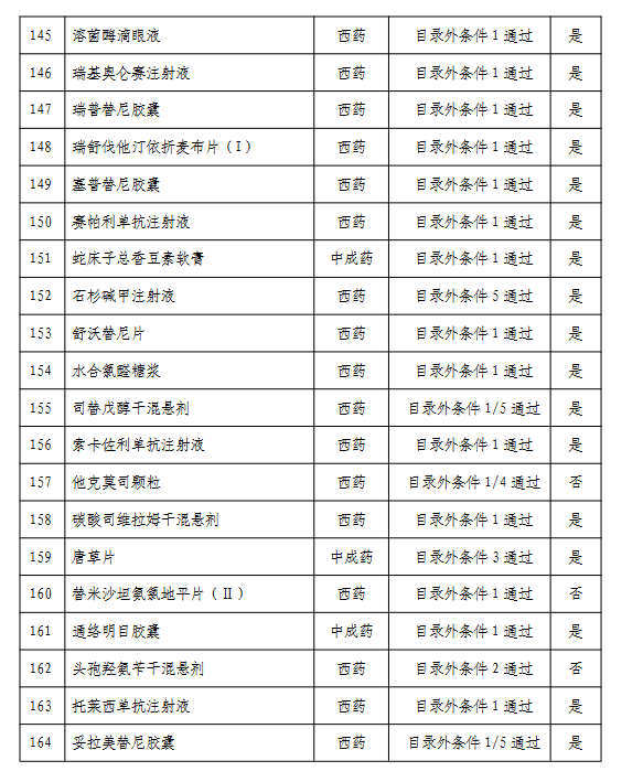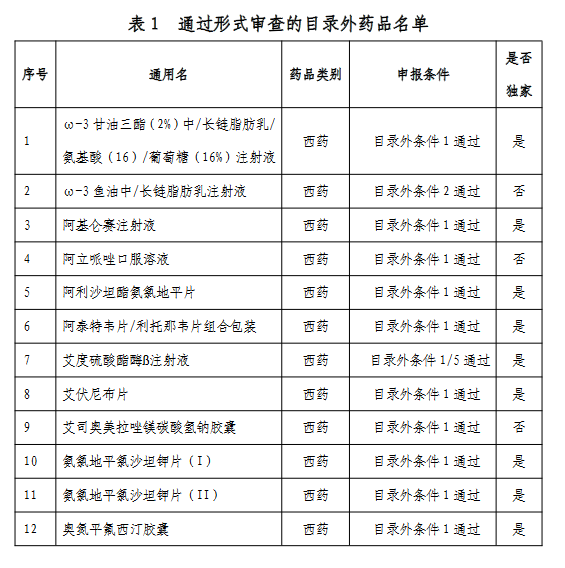 附:通過形式審查的目錄外藥品名單