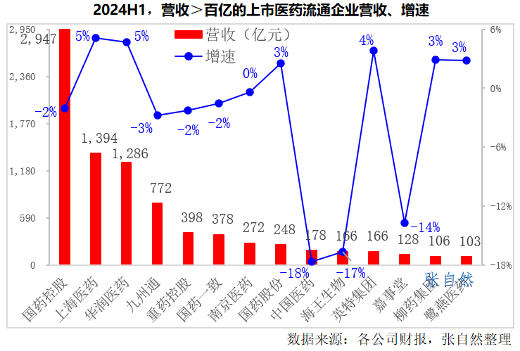 2024年上半年,在營收超百億的14家醫(yī)藥流通上市企業(yè)中: